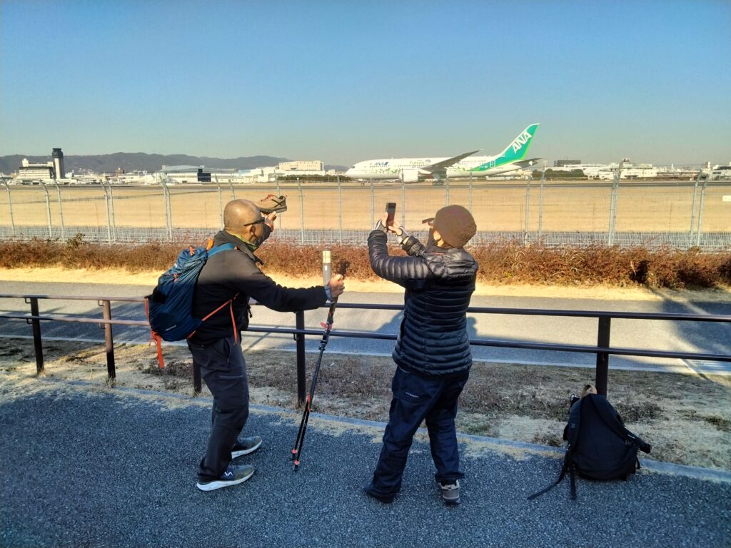 滑走路の真横で航空機の離着陸を存分にご堪能いただいたてから、ゴールのJR伊丹駅へ