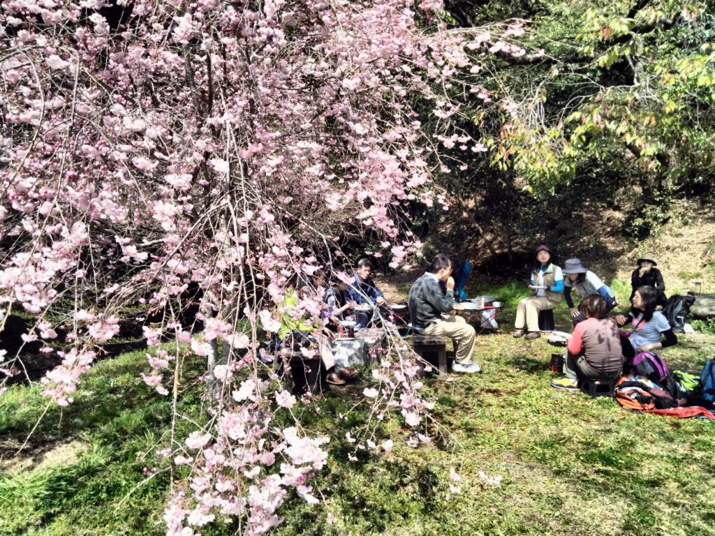 春の暖かな日差しを浴びて、桜をはじめとする春の花、眩い新緑を見ながらお花見アウトドアランチ