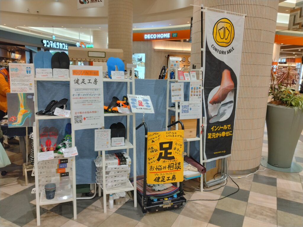 作家さんたちの中ではちょっと異業種の健足工房は、インソールの作成や調整、足や腰やヒザのお悩み相談、アスリートのパフォーマンスアップの相談、足圧とバランス測定などをさせていただいております