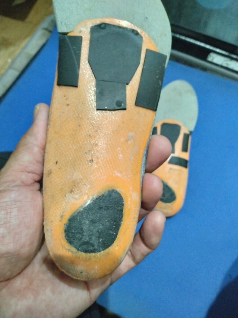 フィギュア選手の場合は感覚が繊細なので、成形した後、厚さ1ミリのパッドで、微妙な感覚を合わせて行きます