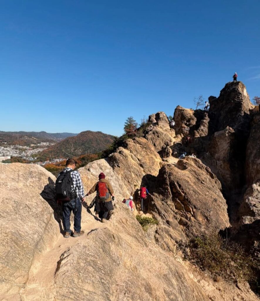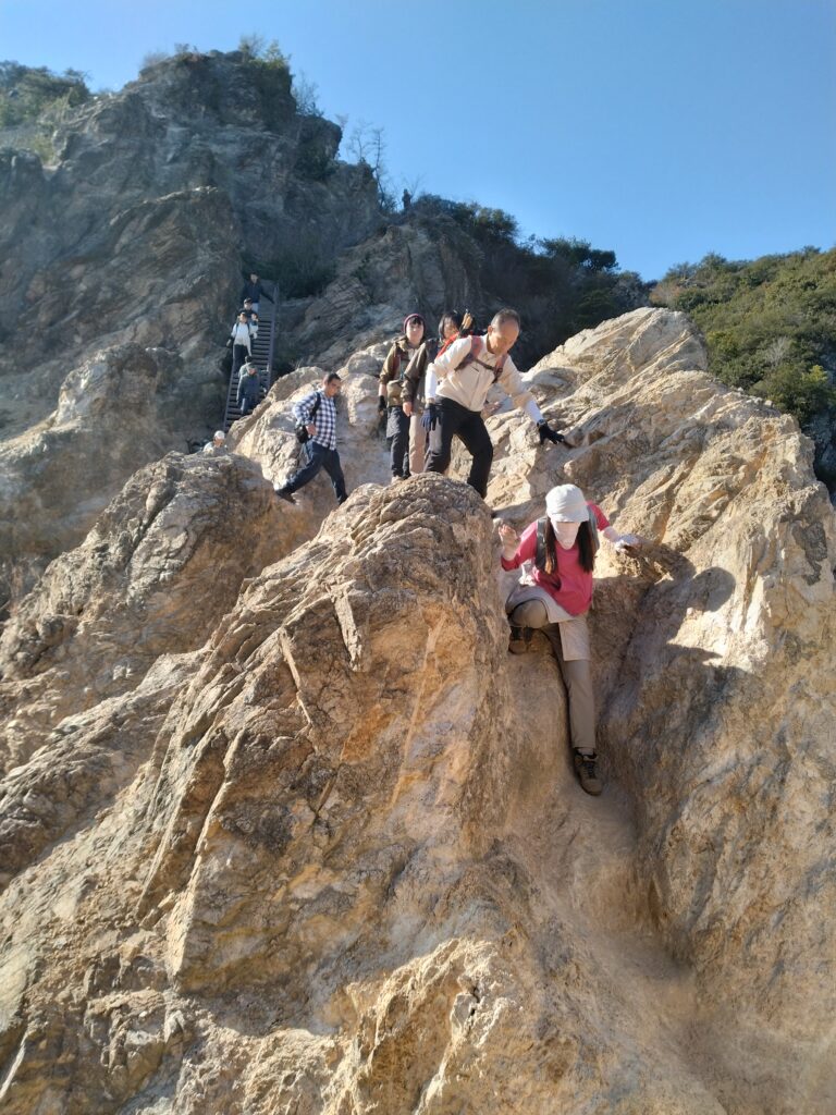 ランチの後は神戸槍と呼ばれる横尾山を越え、だんだんと岩場がが多くなる山道を進むと、今日の核心部、須磨アルプス馬の背が見えてきます