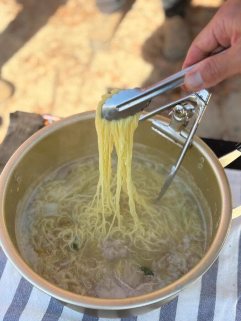 旨味のたっぷり出たスープに細麺を投入して、シメは鶏塩ラーメン!